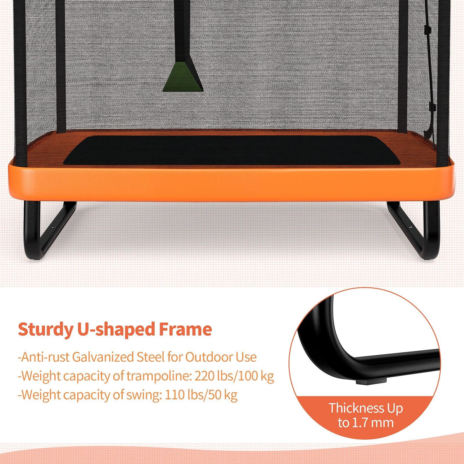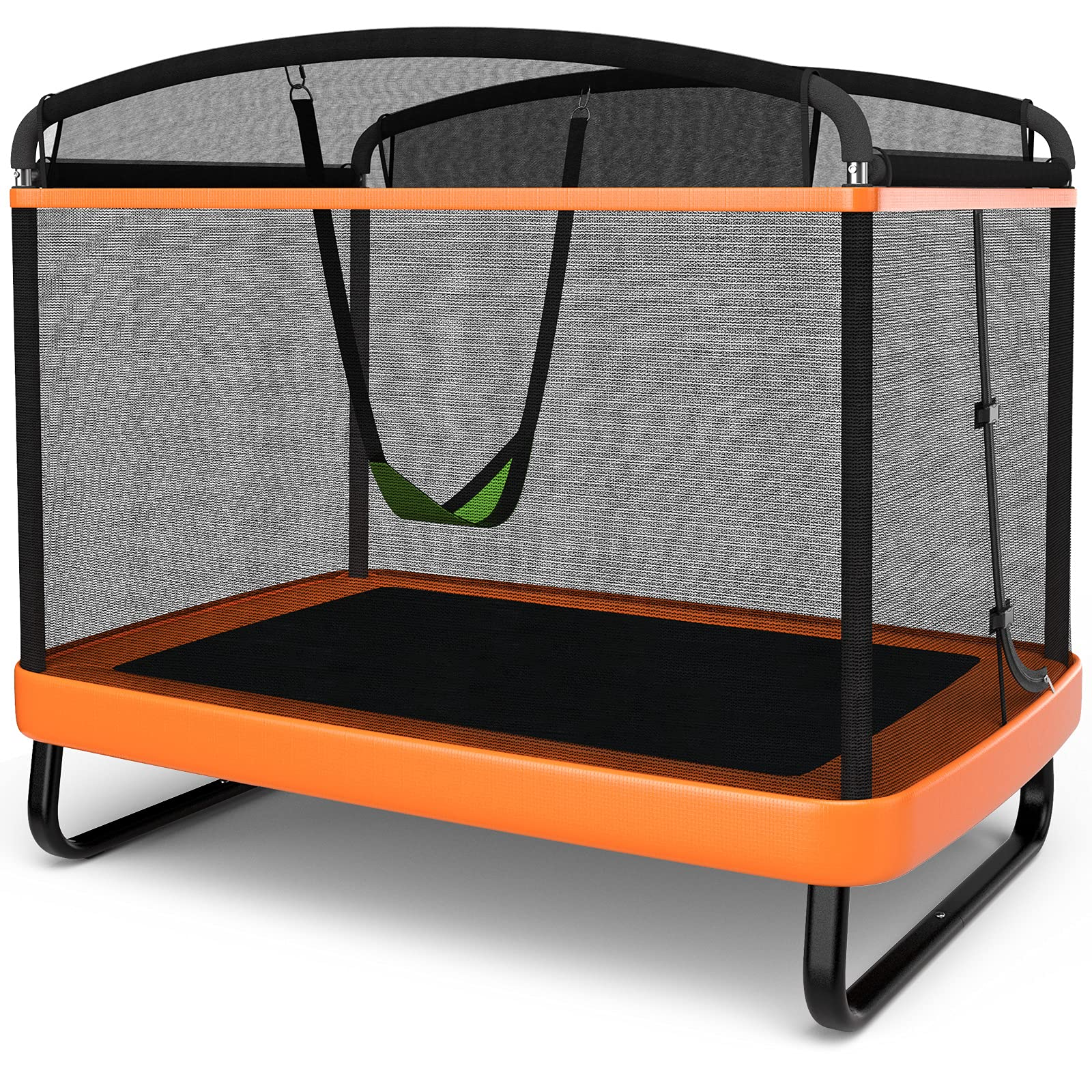 Giantex 6 Ft Kids Trampoline with Swing, Baby Toddler Rectangle Trampoline, Max Load 220lbs (Blue/Orange)