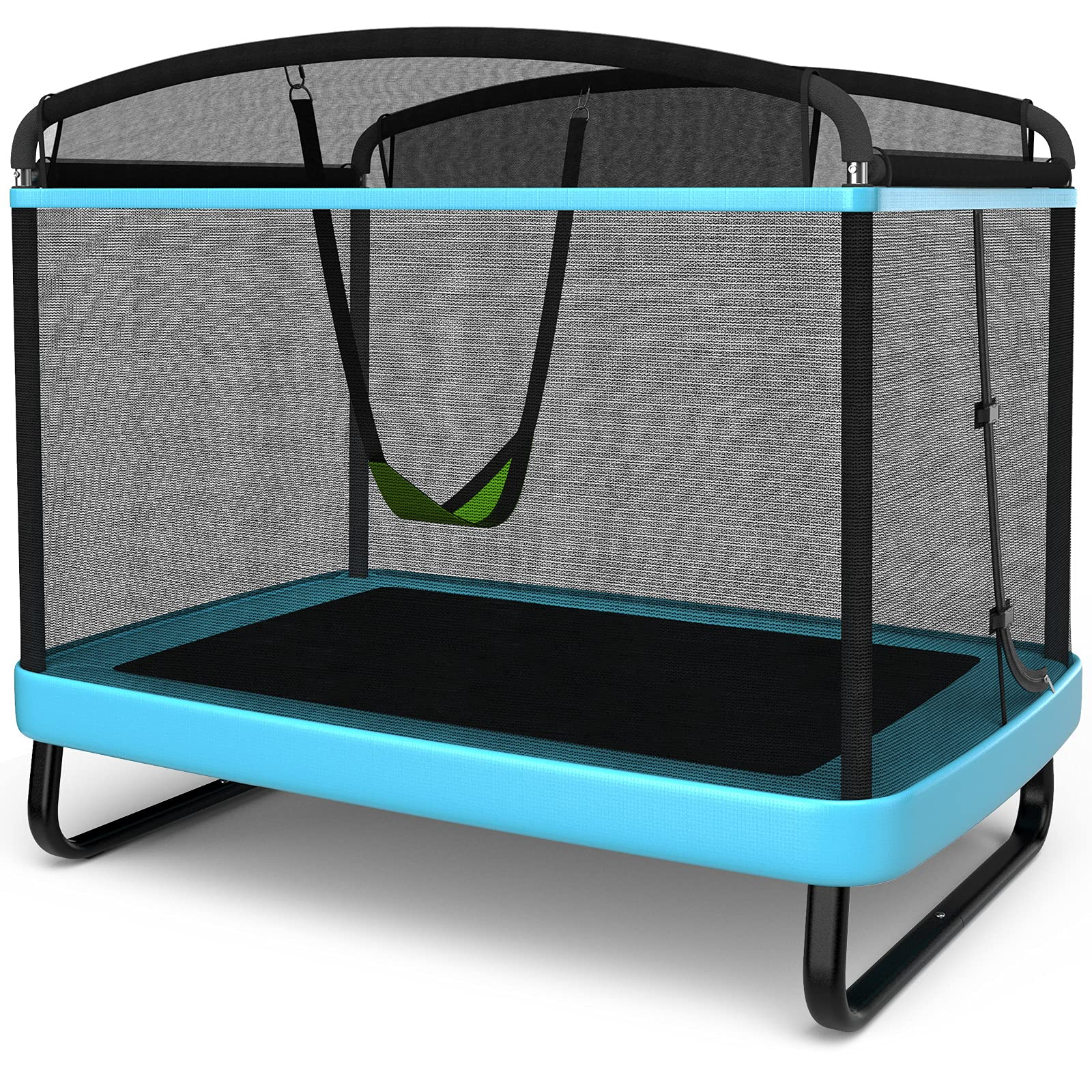 - Perfect Gift for Kid: This rectangular trampoline with a swing brings endless fun for your adorable child. And you can put it wherever, such as the backyard, garden, and other places, enjoying a happy family time together.