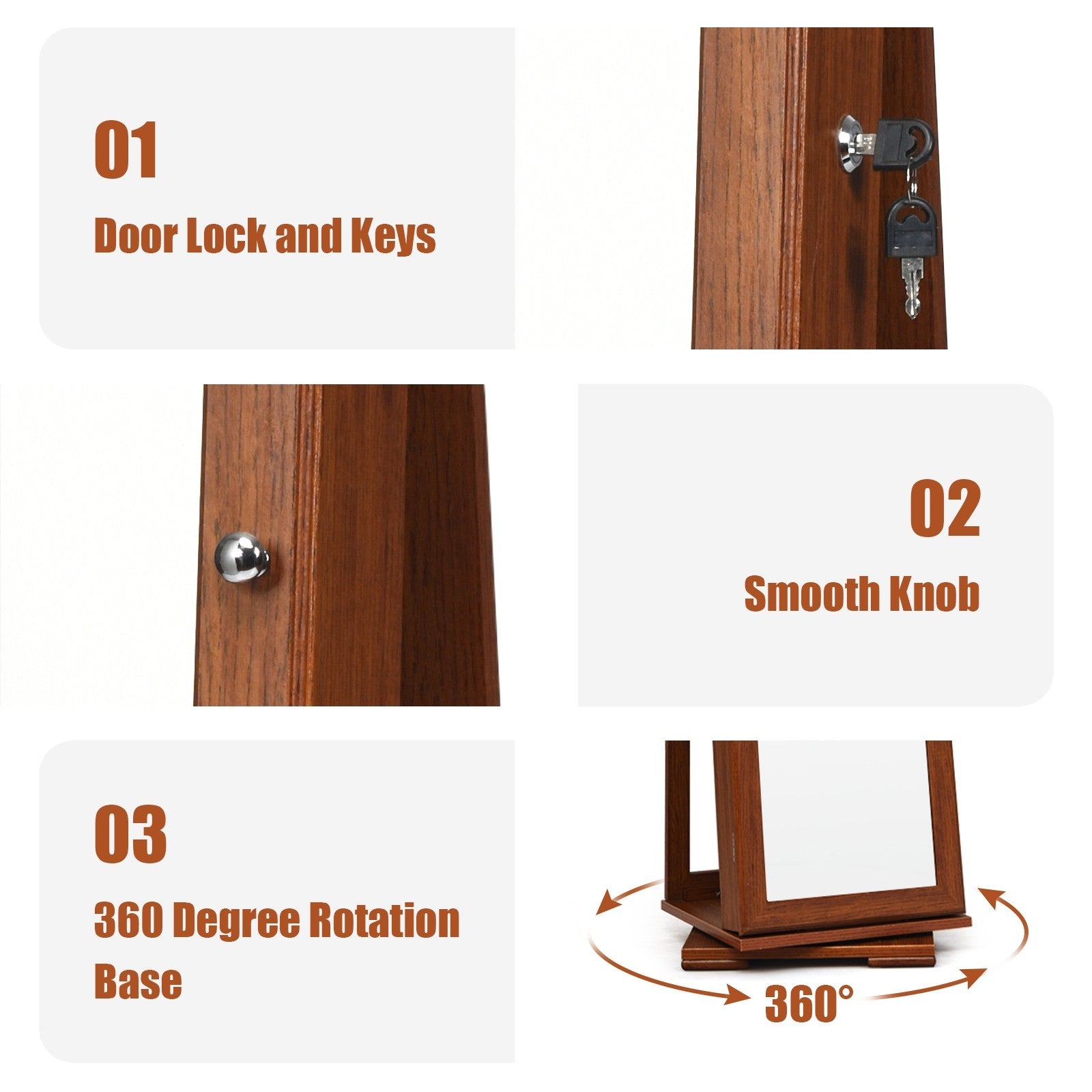 - Key lockable Design for Privacy Storage: Our freestanding jewel armoire is lockable with 2 keys. So you can keep the private storage of your jewelry. Meanwhile, there is a high-grade velvet liner inside to prevent your jewelry from being scuffed and scratched.