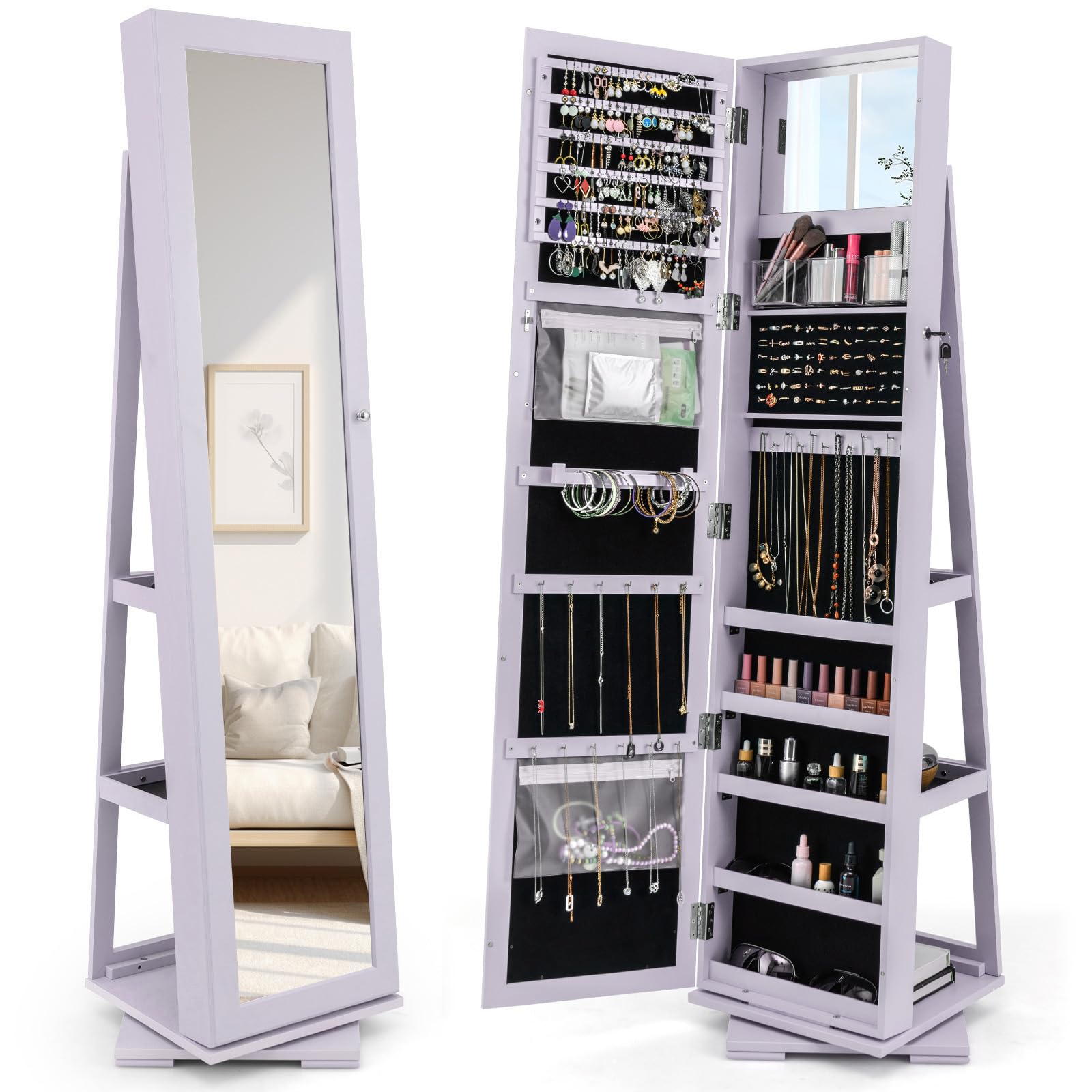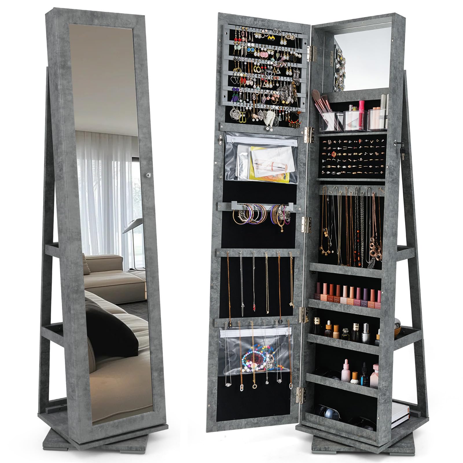 - 3-in-1 Mirror Jewelry Armoire: Enjoying the dual benefits of a jewelry armoire and mirror in one cabinet, this freestanding jewelry cabinet will give you endless fun in dressing up. The extended long mirror offers you a head-to-toe view of your outfit in real image and you can store all jewelry in order with this jewelry armoire.
